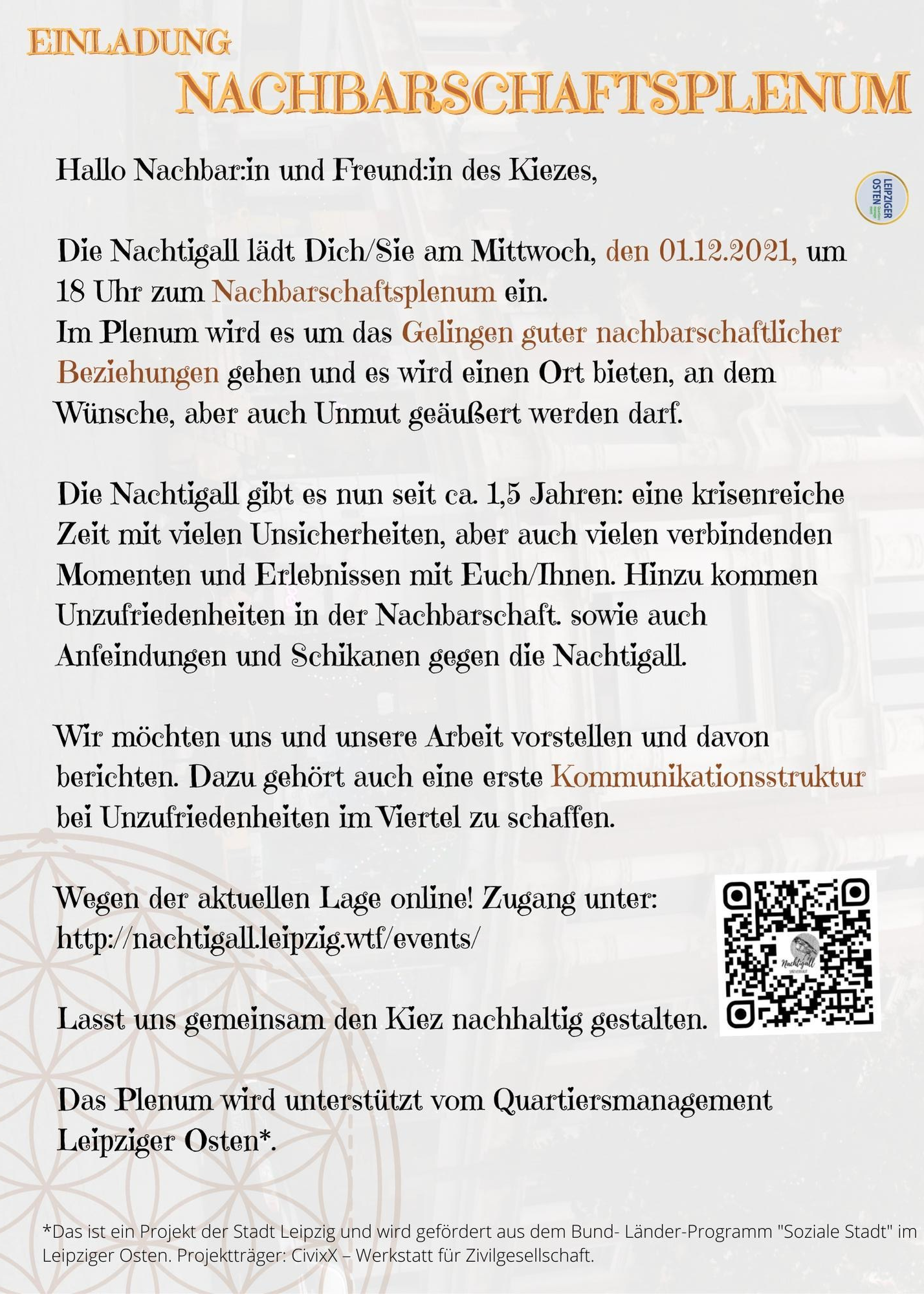 Unser Nachbarschaftstreffen mit euch/Ihnen am Mittwoch, den 01.12.2021 findet online statt. Über den folgenden Link könnt ihr euch für das Online-Treffen anmelden.